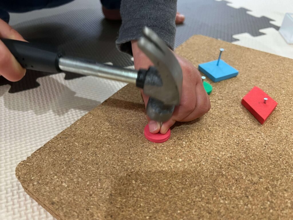 さらに、釘打ちの繰り返しは、手・腕・体幹の安定につながり、後の書字活動や道具操作の土台を整えていきます。